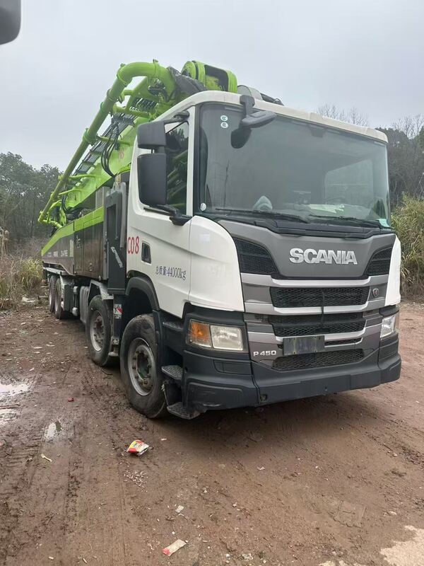 Deze tweedehands Zoomlion betonpomp van 2020 met een Scania chassis heeft matige werktijden en volume, met voltooid onderhoud.klaar voor verschillende bouwbetonvervoertaken.